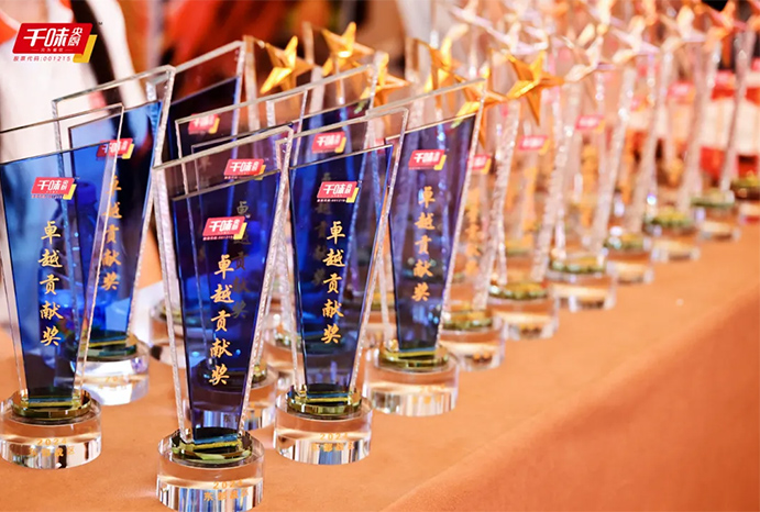 千味央廚高層團隊為優秀經銷商頒獎,共頒發精誠合作獎、新銳合作獎、渠道開拓獎、新品推廣獎、成長獎、增量獎、卓越貢獻獎、興客坊銷售之星獎等幾十余項。千味央廚對優秀經銷商們過去的努力表達了鼓勵與感謝。